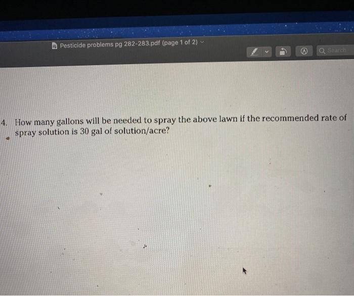 For feet and acres divide by 43560 which is the number of ft 2 in an acre ac. I have a 15 gallon pull behind sprayer. To treat 24 acres at 231 gallons per acre you will need a total spray solution of 5544 gallons.