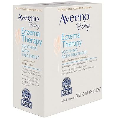 Aveeno baby eczema therapy soothing bath treatment. Developed with leading dermatologists these products are clinically proven to soothe skin with eczema and relieve the dry itchy irritated skin associated with eczema for both babies and adults. Aveeno Eczema Therapy Baby Soothing Bath Treatment helps relieve minor skin irritation and itching caused by rashes eczema poison ivyoaksumac or insect bites. Eczema rashes poison ivyoaksumac insect bites.