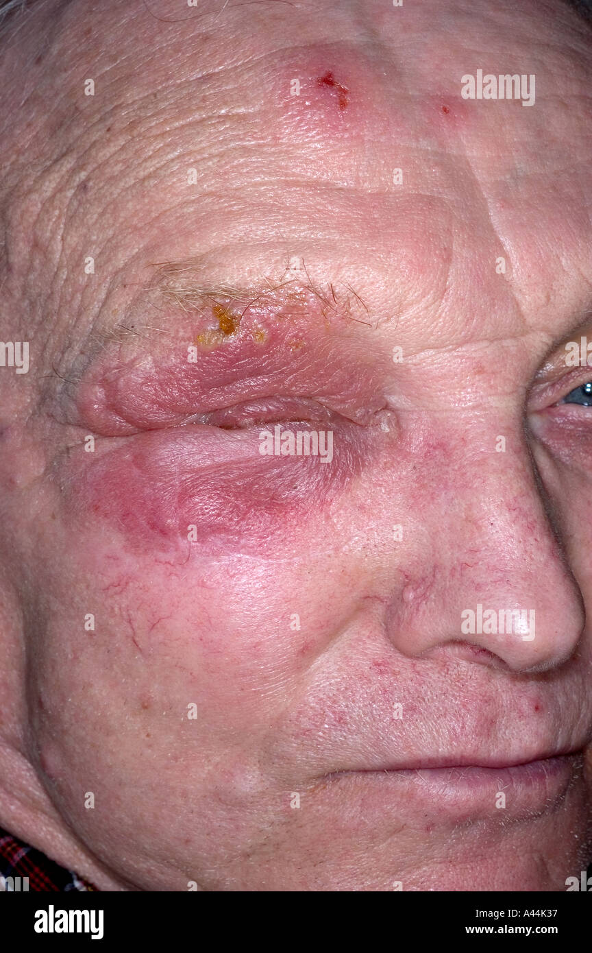 Herpes im gesicht bilder. Meist trocknen die Wunden schnell aus und die Abheilung des Lippenherpes beginnt. Gürtelrose Herpes Zoster Infektion im Gesicht Foto. Äußerlich sind bei einer Gürtelrose im Anfangsstadium noch keine Symptome erkennbar.