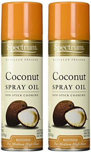 Spectrum Naturals Organic Coconut Oil Spray 6 Ounce Pack of 2 Packaging May Vary 62 2089 Pompeian Coconut Oil Non-Stick Cooking Spray Subtle Coconut Flavor Perfect for Seafood and Baking Coating Naturally Gluten Free Non-Allergenic Non-GMO No Propellants 5.