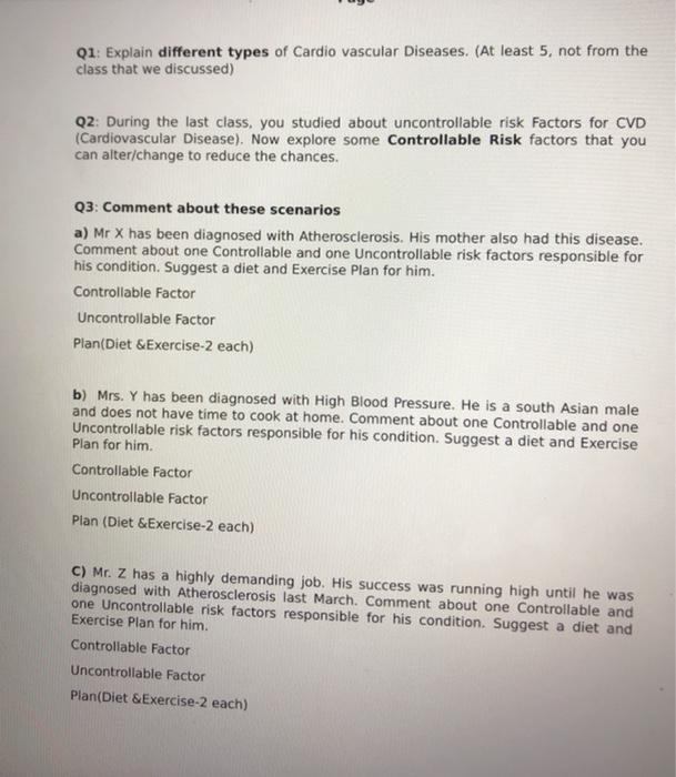 One can inherit the tendency towards having cardiovascular disease. Major risk factors for heart disease that can be controlled or changed Smoking. The chance of developing cardiovascular disease increases with age.