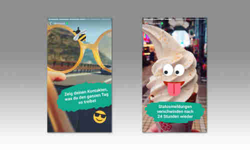 Dafür gehst Du wie folgt vor. Du kannst mehrere Texte Fotos GIFs und Videos zu einer Statusmeldung hinzufügen. Tippe auf das Status-Symbol im unteren Bildschirmrand und wähle wie oben beschrieben ein Foto aus.