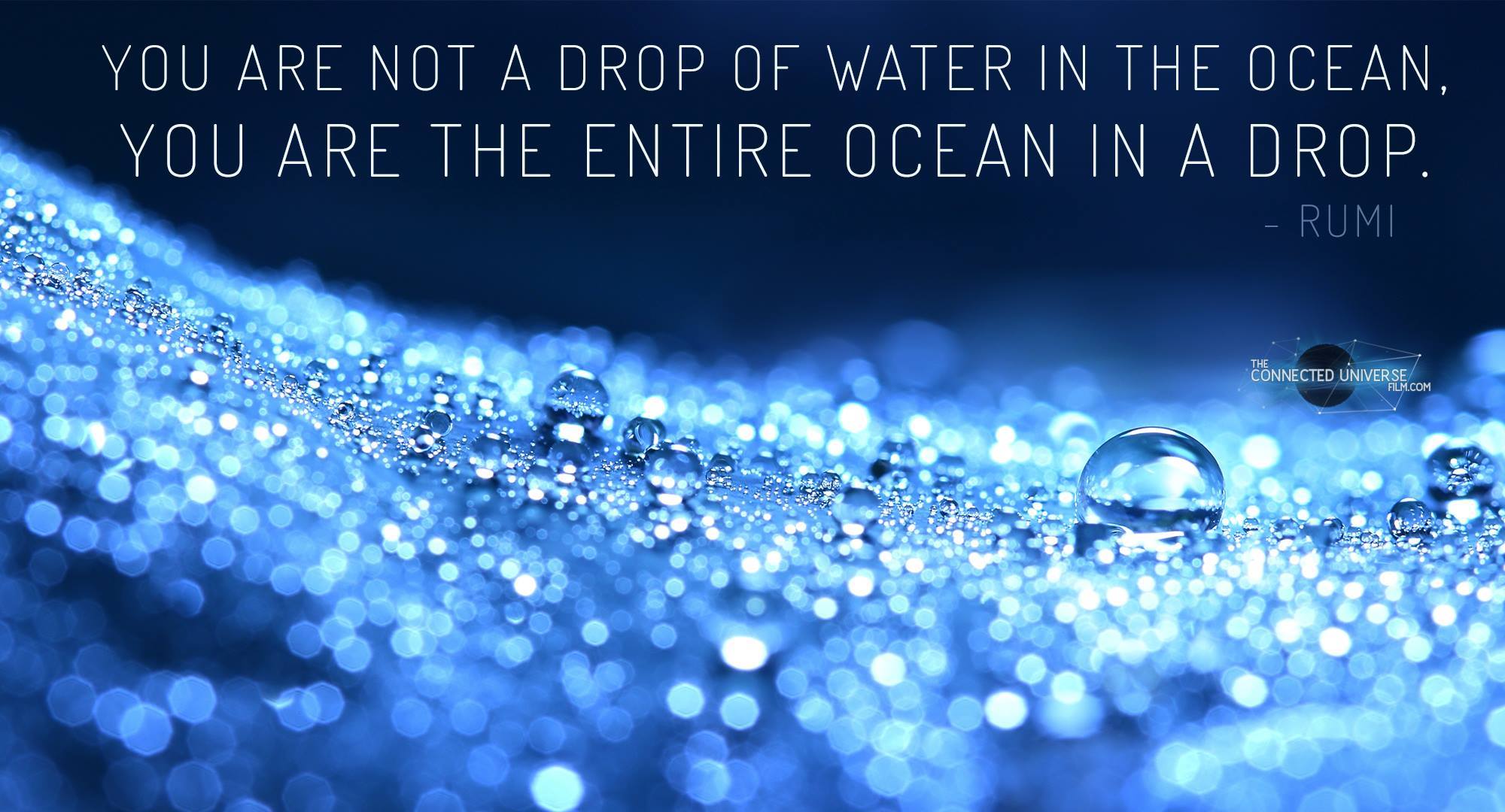 A drop of water in the ocean. Drops of seawater may be lacking in romance and gunfights but they house a wealth of ongoing dramatic tales of microscopic life and survival. A drop is quite small and microorganisms are even smaller. Visualization by Sam Learner.