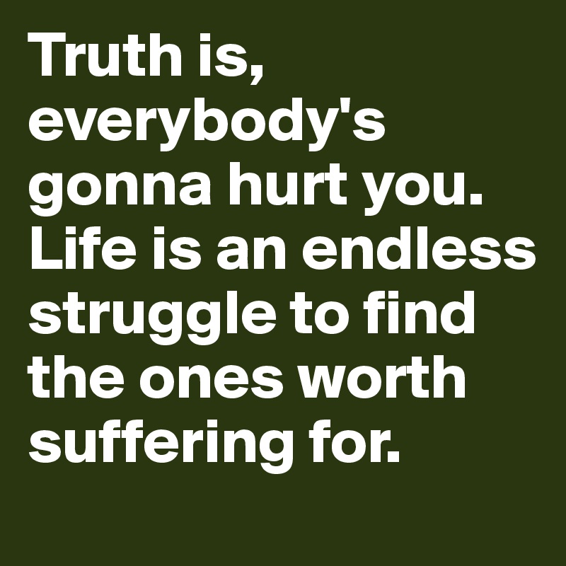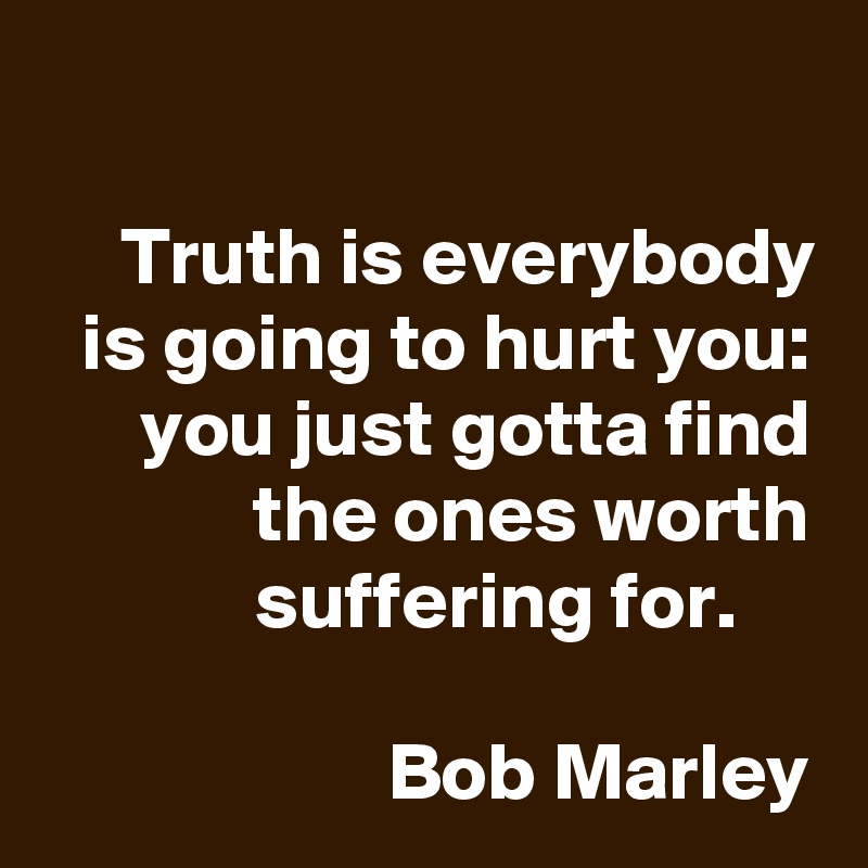 You just gotta find the ones worth suffering for Bob Marley. Bob Marley once said Everyone is going to hurt you. This is not a rehearsal.
