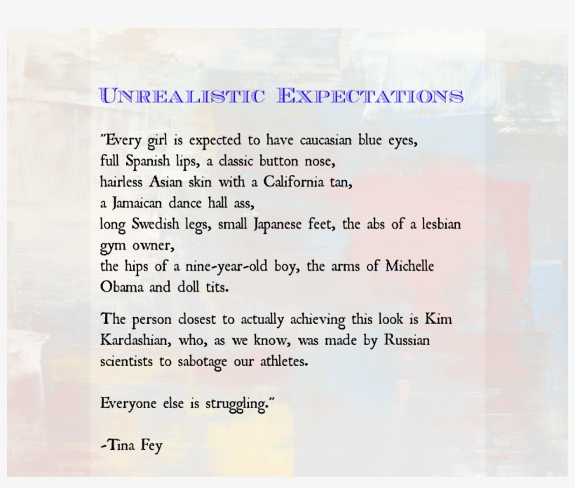 Top Unrealistic Expectations Quotes The author says this socially respectable option NOT to parent has actually made parenthood more stressful. Unrealistic Expectations Of Women Quote By Tina Fey Unreasonable Expectations Quotes Clipart 3914264 Pikpng.