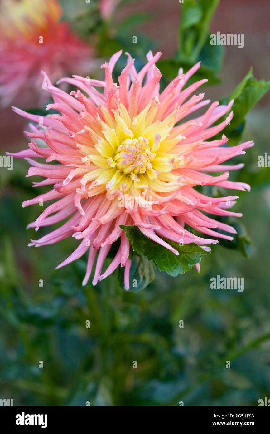 Dahlia Alfred Grille is a superb semi-cactus dahlia producing big flowers with slender twisting petals shaded from salmon pink to yellow. A great pick for borders containers or as cut flowers thanks to its superb vase life. It was and still is an important food crop in Mexico.